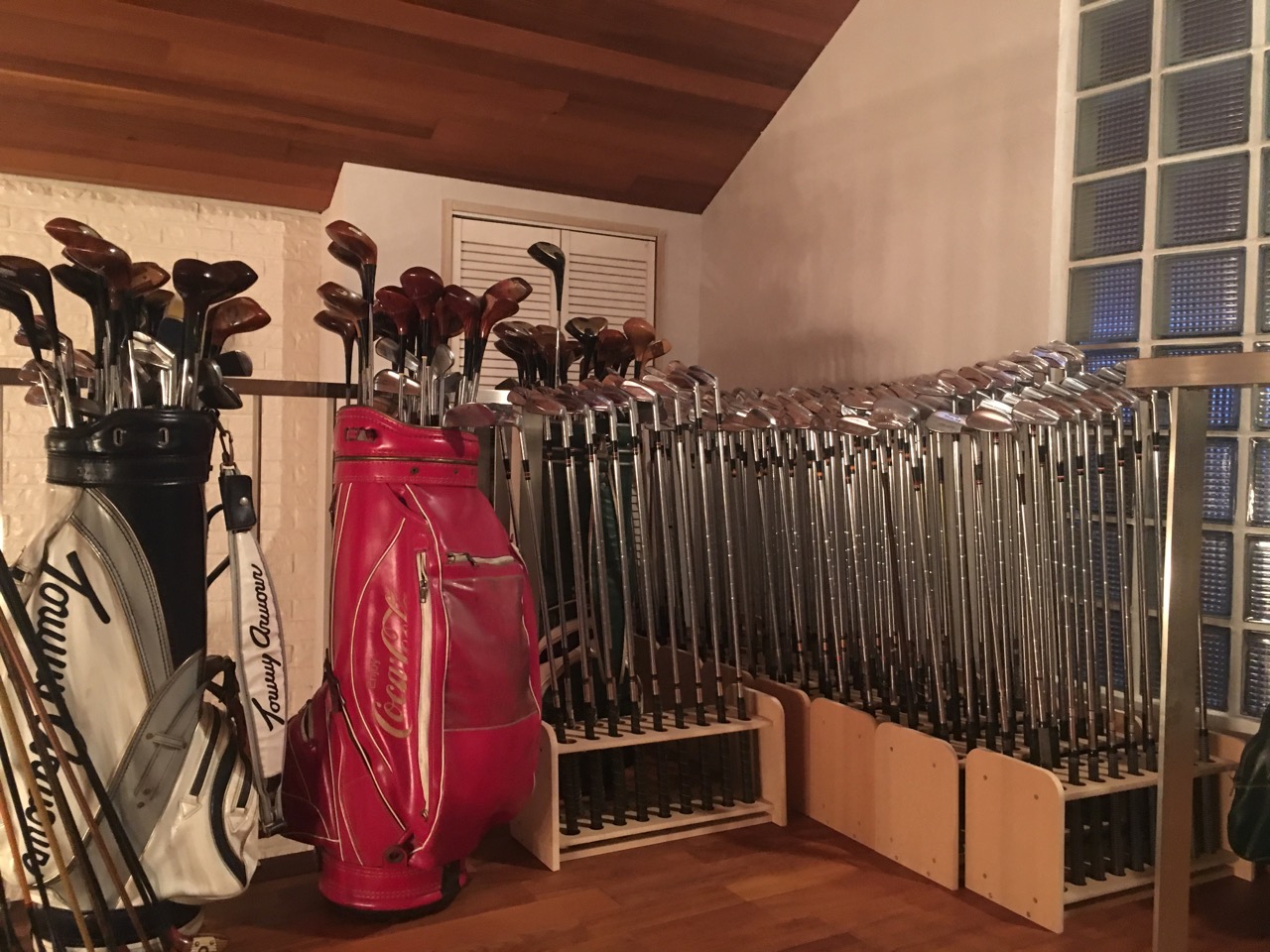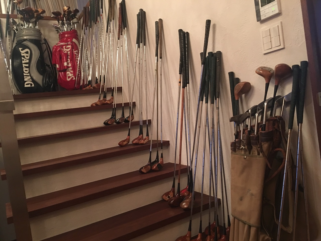 クルマだけでなくオーナーの趣味で調度品やゴルフクラブのコレクションを眺めるのもまた一興です。