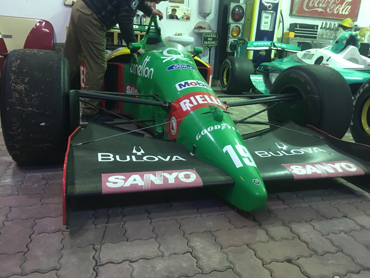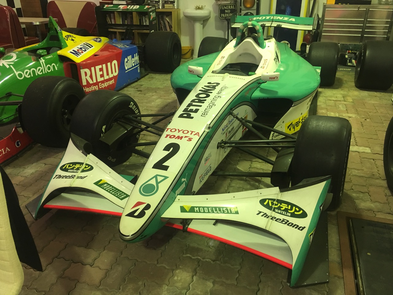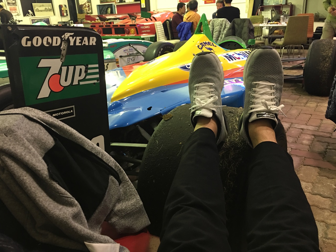 ついつい調子にのってベネトンフォードのF1マシンを足置きがわりにくつろいでしまいました(笑)